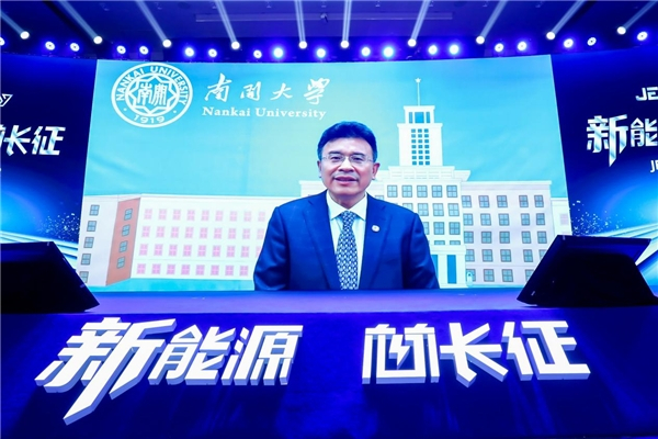 中国科学院院士、南开大学副校长陈军教授,通过视频为本次活动献上寄语,他对捷威动力的发展和取得的成果给予高度评价,期望通过院士工作站、物质绿色创造与制造海河实验室和天津市新能源电池人才创新创业联盟,在多平台、多渠道、多维度进行更广泛、更深入的合作,更好的推动动力电池产业的发展。