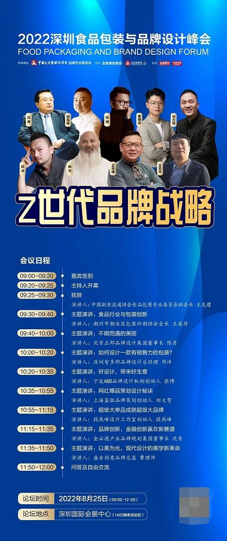 为更好服务促进品牌设计包装的参展企业各路商家协同发展,提供更好的品牌知识,包装新市场的交流互动。2022深圳食品包装与品牌设计峰会,将于8月25日上午9点-12点在深圳国际会展中心(宝安新馆)1403商务活动区举行。本届峰会主题为Z世代品牌战略。