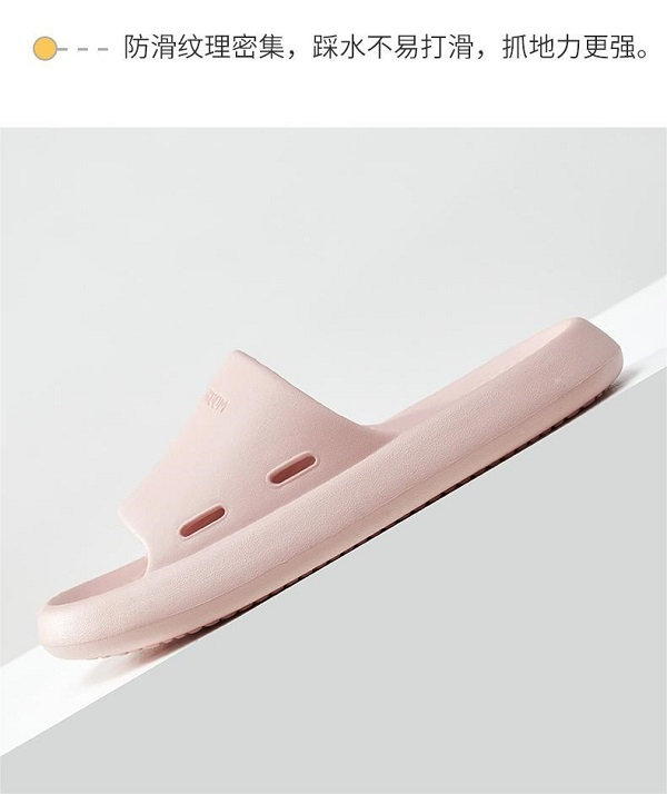 此外,拖鞋的防滑功能也是衡量一双好拖鞋的重要标准之一。优调拖鞋的鞋底采用仿轮胎齿纹防滑大底,搭载极阻™防滑科技,大大增加抓地力,能够站稳不打滑。专门的浴室拖鞋鞋底有疏水沟,科学分布,能够快速疏水。在浴室里穿着它鞋底下面不容易留下积水,走路更安心。