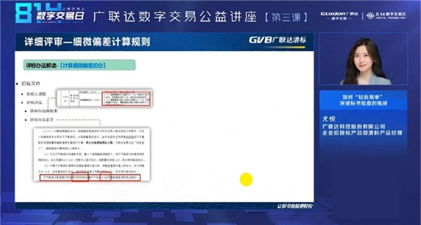 广联达数字交易金融产品经理陈雪丽、第三方交易产品部经理李成龙和招投标产品部清标产品经理尤悦通过讲解广联达在数字化招投标领域开展的创新应用及服务,充分展示了其为招投标行业带来的美好变化。