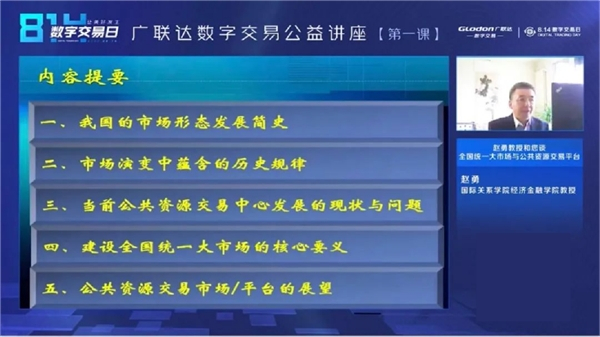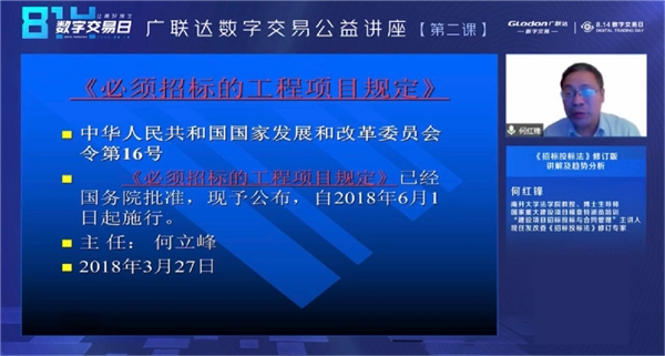 讲座开篇,来自国际关系学院经济金融学院赵勇教授,广联达数字交易高级售前咨询肖杰和高级研究员刘跃广带来公共资源交易数字化改革的前沿观点和平台建设思路。