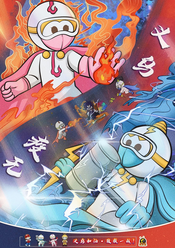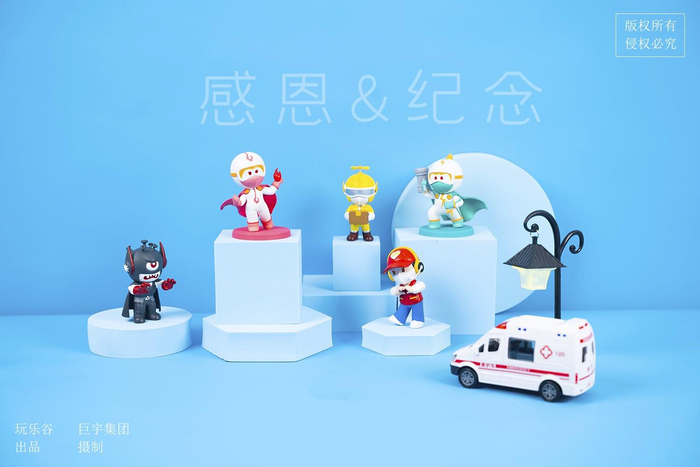 并非简单套用真实人物形象,义乌玩乐谷文化发展有限公司更多地添加了抗击疫情的过程中那些让人记忆犹新的元素,同时融合传统中国文化,创造出的“守护神”原创手办在一众防疫纪念品中独具匠心,让人眼前一亮。