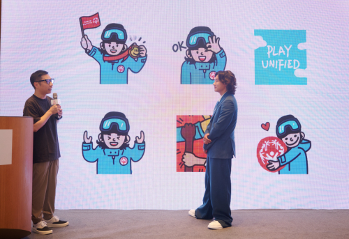 闪萌创始人兼CEO陈力向现场观众介绍“苏翊鸣特奥表情包”