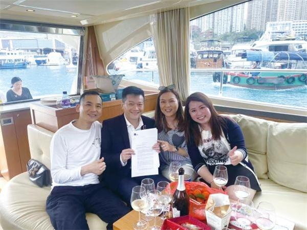 陈建鸿博士、陈雅仪小姐与合作伙伴一起出海时合影