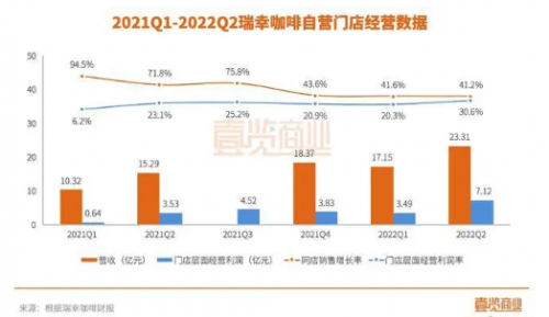 自营门店部分,自2021年实现门店层面经营利润首次年度转正后,2022年,瑞幸咖啡延续了盈利势头,第二季度门店层面经营利润达到单季新高的7.12亿元,经营利润率为30.6%。