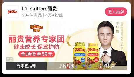 丽贵L’il Critters始于1998年,是全球儿童营养软糖市场的领军品牌,其品牌理念是“我让营养更美味”,并一直致力于用美味有趣的方式倡导儿童营养健康。旗下系列产品均采用软糖剂型,QQ弹弹的口感,酸酸甜甜的果味,逗趣可爱的小熊造型深受小朋友们的喜爱。自2017年进入中国市场以来,丽贵L’il Critters已收获广大宝妈和专业人士的认可与推崇。