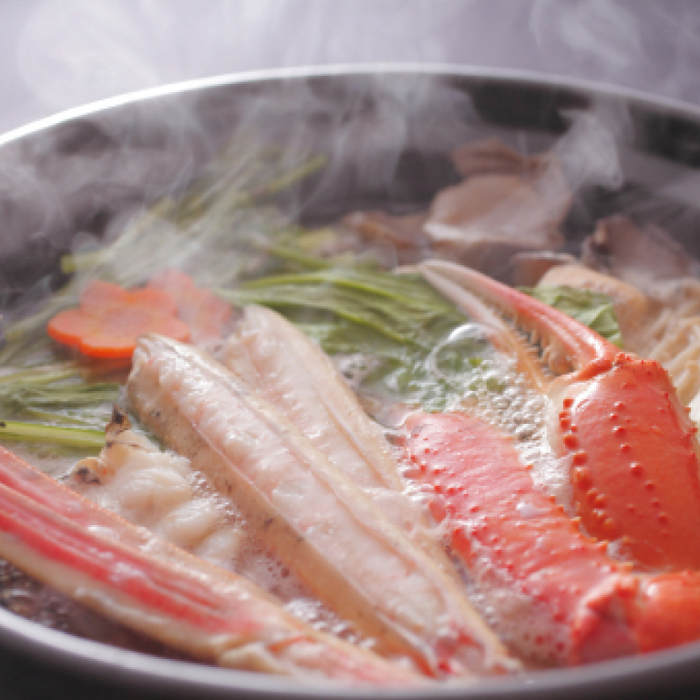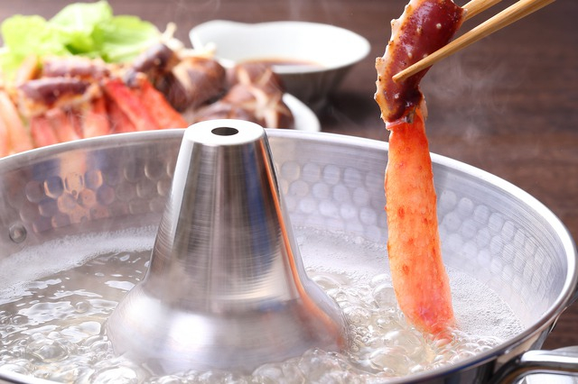 将雪蟹肉放进用海带和其他食材制成的鱼汤中,轻轻地汆烫后从汤中捞起,蘸上酱油和醋食用,就能享受无比鲜嫩美味的雪蟹。
