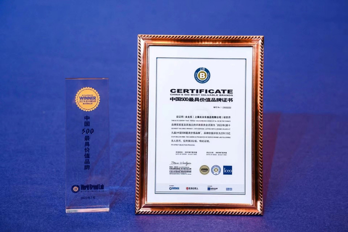 7月26日,世界品牌实验室于中国北京揭晓2022年(第十九届)《中国500最具价值品牌》排名,同期举行了世界品牌大会暨盛大的颁奖典礼。作为中国鸡精、鸡粉行业标准制定者之一的太太乐再次入围榜单,以239.15亿的品牌价值,位列第332名。