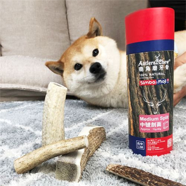 另外,在刚开始使用鹿角磨牙棒时,我们会发现大多数狗狗都对它非常喜欢,而一小部分却貌似没有多大兴趣。这是由于平常所使用的磨牙产品中添加诱食成分,而天然鹿角仅靠自带的野性气息。建议这类狗狗的主人们可以选择剖面规格,更具吸引力,或将鹿角放入骨头汤中浸泡两个小时,晾干之后再给狗狗,相信它的反应会大不一样。