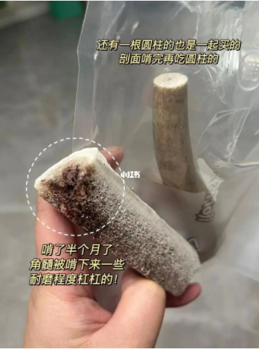 其次,吉辛的鹿角磨牙棒更细心的针对不同的犬种,产品有小号剖面款、小号圆柱款、中号剖面款、中号圆柱款、大号圆柱款和特大号圆柱款6个款型,适合不同大小犬种需求,不会有无法咀嚼的问题。无论是成长过程中的磨牙,还是日常磨牙玩耍、减少对家具的损害,鹿角磨牙骨都是不可多得的好物。