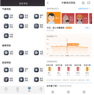 针对一些特殊气象环境,墨迹天气在思考如何更全面、更精细地提供健康和出行安全服务。除了气象预报服务,墨迹天气VIP会员还可以享受23项专属特权,包含个人专属的播报提醒。比如,面对即将到来的“末伏”和“秋老虎”,墨迹天气VIP会员享有“流感预报”和“中暑播报“,通过对不同的人群和场景进行精细化预警,尤其为老人、小孩、宠物、户外等特殊人群和场景提供中暑、流感预警,以及防范应对措施,守护家人伏天的健康安全。