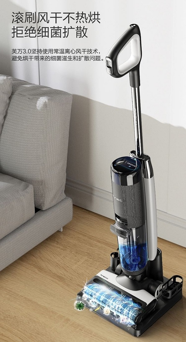 它采用了添可独创的Smooth Power双驱助力系统,后轮双电机驱动再搭载智能算法驱动滚刷前后抓地,预判移动方向和速度,实时为用户提供助力。双管齐下,对用户体验感有巨大的提升效果。
