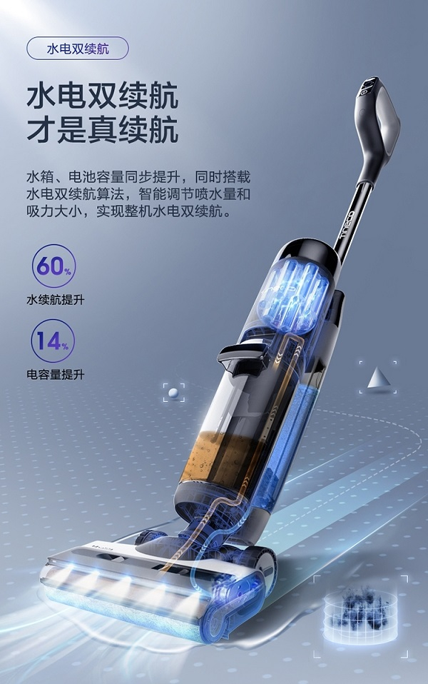 续航一直是考验产品实力的重要指标。普通洗地机可能单项指标较优,但实际使用中常会因为需要不断补充清水、处理污水而频繁停止清洁工作,大大降低清洁效率和体验感。