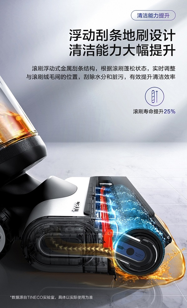 滚刷通过双侧贴边设计,两侧缝隙小于10mm,更适配不同使用环境;电解水效率提升40%,只需自来水就能拥有99.99%的细菌杀灭率,守护家中老人小孩和宠物的健康。