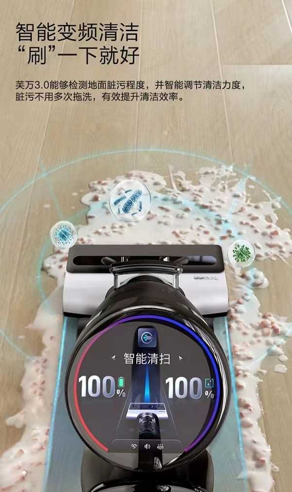 作为一款“会思考”的智能洗地机,芙万3.0进一步提升自动检测地面脏污的能力,智能调节清洁力度,不用再多次拖洗;智能清扫、智能除菌、智能吸水三大模式,轻松应对全屋清洁;3.6寸LCD全面屏,让各种智能模式、操作方法一目了然,是全家人获得幸福感的可靠“队友”。