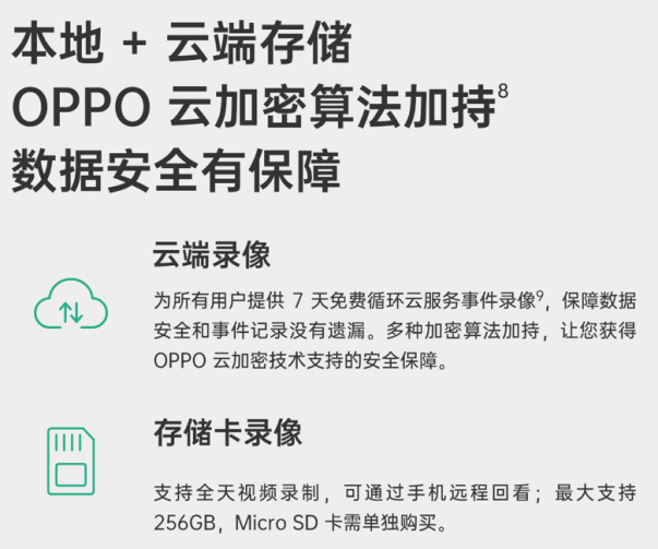 同时支持本地和云端存储两种录像方式,云端有oppo云加密算法支持,大厂的安全还是有保障的,还可以同时使用存储卡录像。最贴心的是其视频通过智能编码,同样清晰的画质,录影文件占的内存却减少一半,极大的节约了内存成本,其实这种细节才是一个成熟大品牌出品该考虑的事情,以及衡量一个产品完成度的标准,oppo不愧是专注于用户体验的品牌,对于oppo手机的用户,colorOS系统与产品的深度互联,能让整个操作过程更流畅无阻。