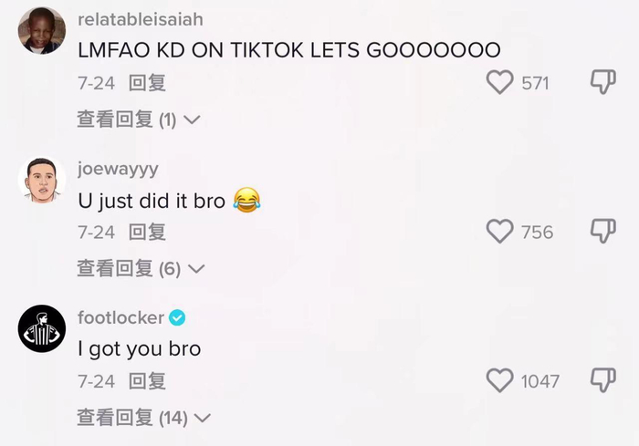 虽说是涉足新领域,但杜兰特在TikTok上的人气不比球场低。除了互动数据量高,球迷在评论区里对他的加入表示热烈欢迎,纷纷留言“老哥,终于等到你了!”