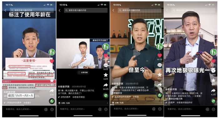 其实早在2020年4月,老爸评测就在抖音上发布消费预警视频,提醒家长让小孩子远离磁力珠。为了避免更多儿童受到伤害,老爸评测今年在抖音、微博、知乎等各个渠道发起“磁力珠立牌”线下推广的征集活动,希望能够找到更多的人,在线下共同宣传磁力珠误食的危害。