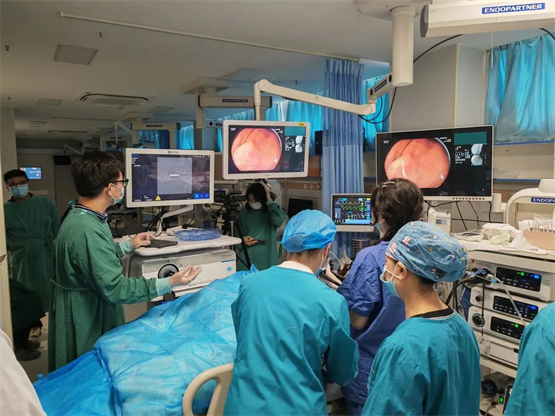 ▲谢睿教授应用共聚焦显微内窥镜做ESD手术演示