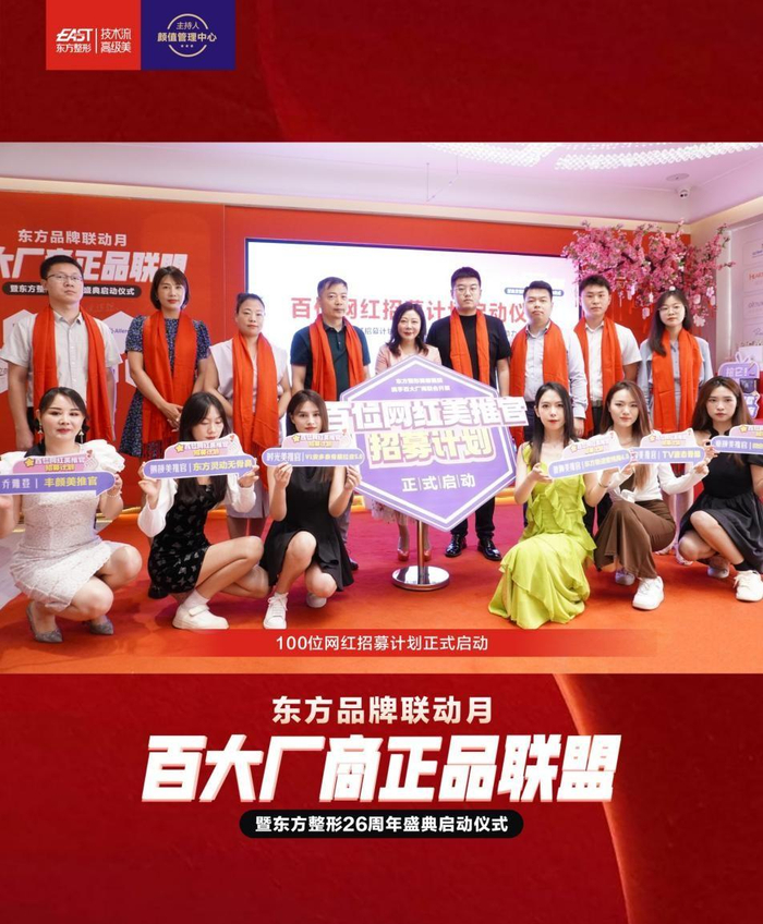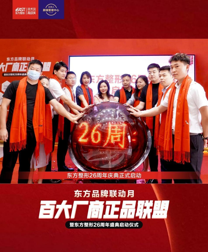 2022年8月13日上午,东方品牌联动月·百大厂商正品联盟暨东方整形26周年盛典启动仪式,在东方整形美容医院隆重开幕!