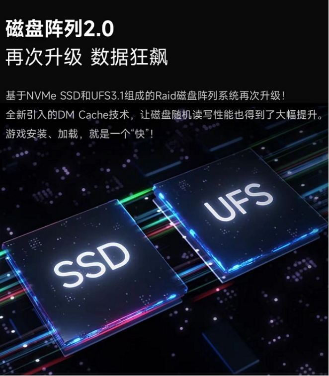另外,磁盘阵列系统2.0也是黑鲨5 Pro的一大亮点,黑鲨开创性的通过在手机内部增加一块SSD固态硬盘与UFS3.1闪存磁盘进行组队联调,通过RAID磁盘系统架构优化顺序、随机读写能力。经过工程师的不断优化,磁盘阵列系统2.0的读取性能提升124.5%,写入性能提升83%,这让黑鲨5 Pro进一步拉开了与其他旗舰机性能差距。