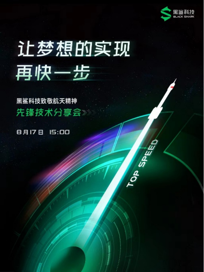 今日,黑鲨游戏手机在社交媒体上宣布,将于8月17日15:00携手中国航天的科普专家召开先锋技术分享会。从分享会“让梦想的实现再快一步”的主题可以看出,此次会议将围绕“速度”这一人类长久以来不断突破再突破的课题进行脑洞大开的探讨。