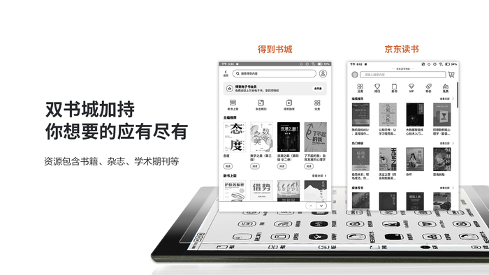 发布会上还展示了文石BOOX全新升级的BOOX OS阅读系统,在内容生态方面,得到书城重磅入驻,文石用户可以在文石产品里使用得到强大的关键词搜索功能。这也意味着文石BOOX有了京东读书和得到双书城加持,极大丰富了阅读内容。此外,在交互方式、阅读内容更新,笔记更新上也有了大的突破和创新,能够满足更多用户全场景、全时段的品质阅读需求。