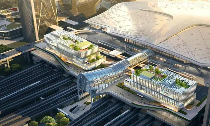 杭州西站作为站城高度融合的超级TOD项⽬,将高铁枢纽建设和城市发展、生态保护紧密结合,涵盖科技、文化、商业、休闲、公寓、办公等多功能产业组团吸引创新产业汇聚。