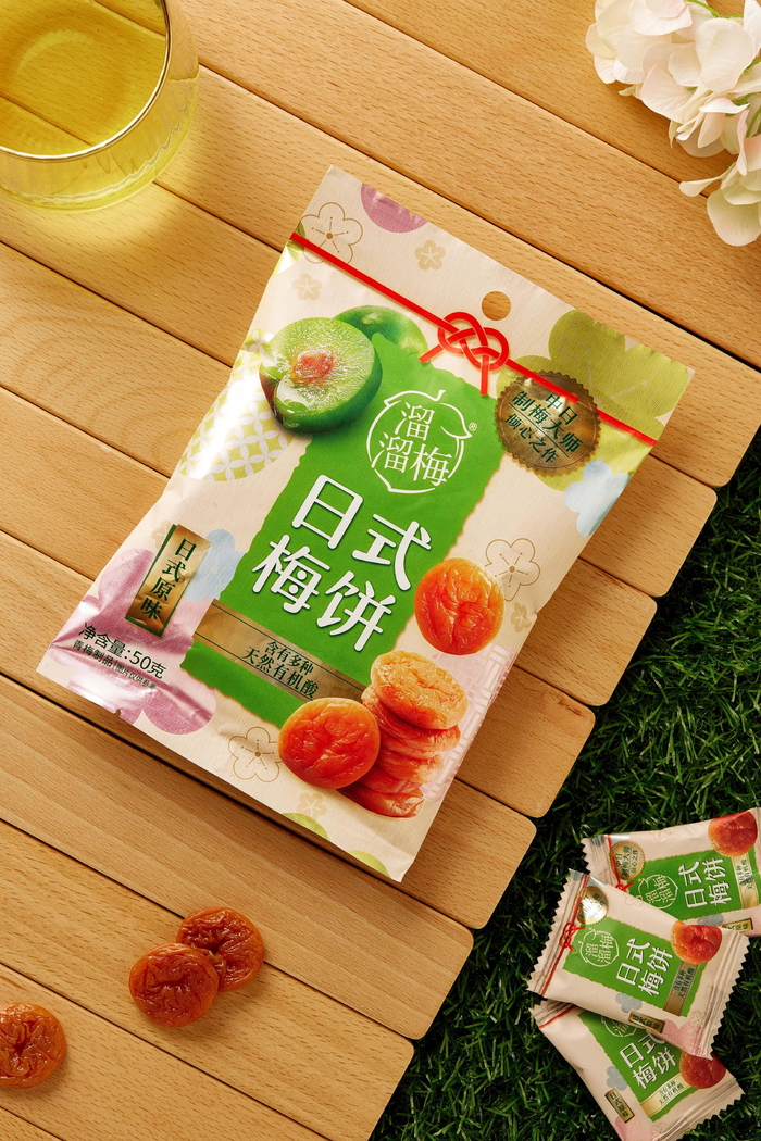整体以青梅为原点,以青梅休闲食品为基础,不断主动求变,积极探索品类创新,以此精准切中国货零食风潮下的高阶健康赛道。爆款频出的溜溜梅不仅解决了青梅零食口味单一的问题,还围绕0蔗糖、0添加、天然的健康理念,创新更多溜溜梅吃法,产品形态从原始的青梅跨品类推出创新品牌日式梅饼,并持续在原有赛道上进行产品创新。