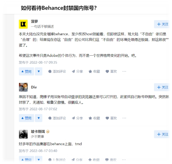目前有关“Behance封禁国内账号”的消息已在各社交平台上发酵。