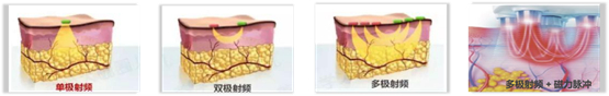 ▪ 采用单极+双极+动态多极射频联合PEMF磁力脉冲技术。