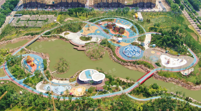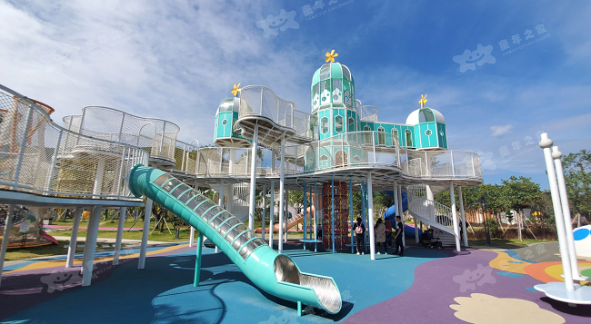 在户外乐园的打造中,童年之家以「主题营造」的方式生成游戏空间,尊重自然与场地,以“艺术+”的手法进入空间,将奇幻元素融入到无动力设备中,带孩子们进入海洋、森林、天空、宇宙……在玩耍中的发现神奇奥秘。