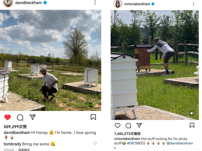 今年4月,贝克汉姆在社交媒体上更新一个照片,他正在照看家中的蜜蜂,院中错落有致地摆放了几个蜂箱。粉丝们纷纷称,养蜂要成为新时尚流行。紧接着,贝克汉姆的夫人维多利亚又在社交媒体上发布一条视频,贝克汉姆沉醉在自家养的蜂箱之间。