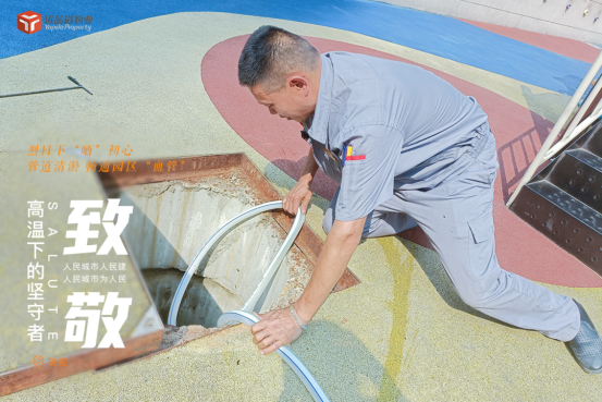 工程师傅日行万步,排除隐患,趴着、跪着,不间断检查各种设施,及时修复受损设备,用最快的速度以专业的技术解决问题,保障设备正常使用。汗流浃背的他们,全心为社区业主享受正常的生活付出努力,浸透了汗水的工作服,透露出他们爱岗敬业的无尚精神,他们以高温为伴,无怨无悔。