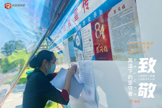 炎阳炙人,她们穿梭在园区各个单元,巡查园区,检查楼道,清理杂物,张贴通知……她们保持美好笑容,始终在贴心服务的第一线,用专业的服务、真诚的态度,竭尽全力为业户解忧。