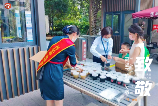 为了确保物业服务品质及员工身心健康,优品道物业也积极采取降温保产措施,落实物业服务安全生产,在超高温环境下给予清凉关怀,错峰作业,劳逸结合等一系列防暑降温措施,为业主与员工撑起“防暑遮阳伞”。