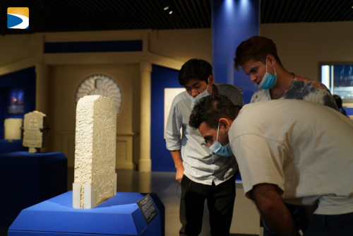 在参观海交馆的过程中,来自埃及的Z世代被一块石碑吸引了目光:石碑上一面是中文,一面是阿拉伯文。两个古老的语言在这座石碑上碰撞出文明的火花,背后映射的正是丝绸之路的意义之一,世界文明的交流互鉴。