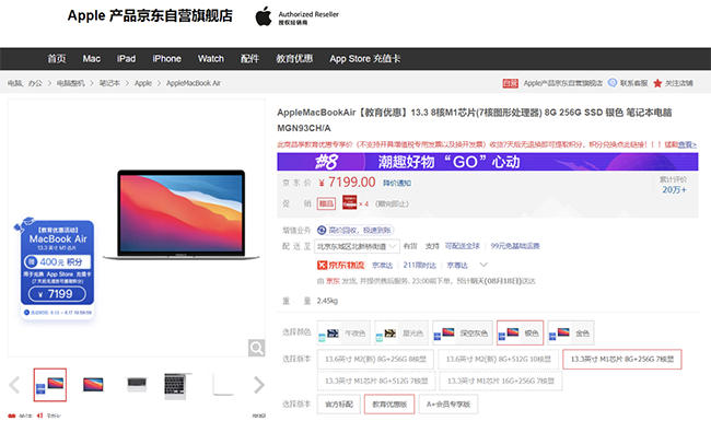 临近开学季,即将入学的高校新生们可以考虑入手一款性能强劲的MacBook,为即将开始的大学生活做好准备。推荐MacBook Air 13.3英寸机型,该产品适配M1芯片,应对各种复杂工作和繁重任务都不在话下,采用无风扇设计,运行时安静无声。京东下单限时享12期免息。针对8+256G教育优惠版,京东818手机节还将在17日晚8点限量赠送AirPods,感兴趣的朋友速速抓住机会下单。