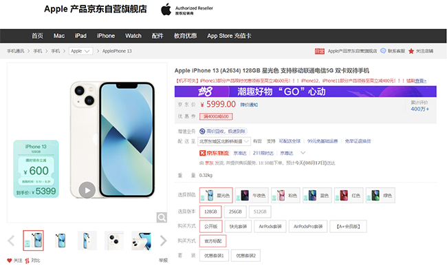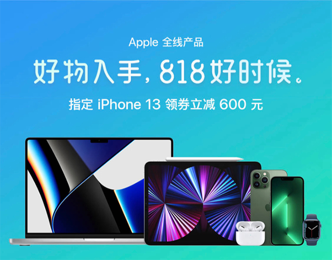 京东818手机节火热开启 购买iPhone 13领券立减600元