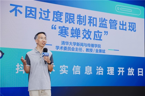 (清华大学新闻与传播学院学术委员会主任、教授金兼斌演讲)