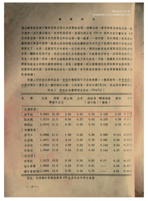 1939 年《酿造杂志》第二期刊登《张裕葡萄酒之分析与各国葡萄酒之比较》