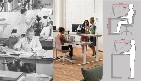 种种社会因素,催生出新模式的出现,也带动了相应技术的升级与革新。Bjarke Thomsen指出,“90年代,瑞典的大公司希望工程师们从使用绘图板工作,转向使用电脑和显示器工作。由于习惯使用绘图板,工程师们往往是站着工作的,于是瑞典公司对工作站进行了更换,第一批高度可调升降桌即应用于此。”
