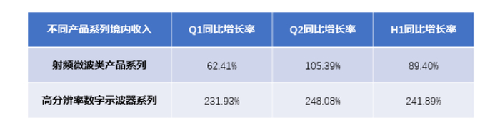 其中,在高端产品广泛受到市场接纳的同时,高分辨率示波器以及射频微波产品在境内市场增长更是极为亮眼。报告期内,射频微波类产品境内收入同比增长 89.40%,高分辨率数字示波器系列产品境内收入更是同比暴涨 241.89%,成为工业市场的明星产品。