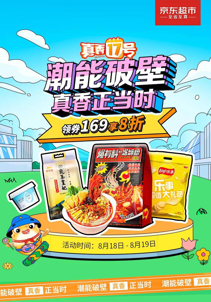 就在这个八月,京东超市便再次“秀操作”,把美味带进校园,以「潮能破壁,真香正当时」为主题,打造了一场以食会友,破壁开学季的大型Social现场。