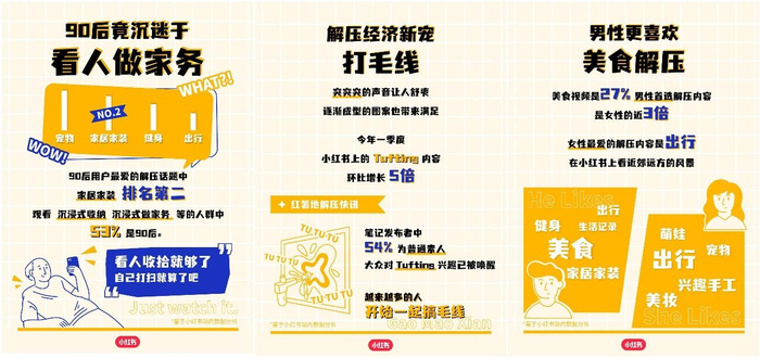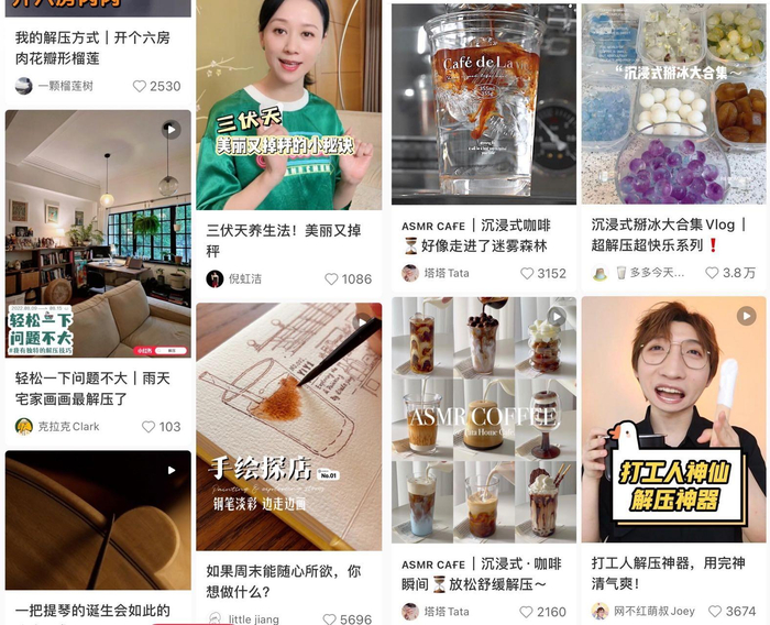 “好多内容都是自然生长出来的,我们事先也没有想到,大家的解压方式这么丰富多彩。”负责小红书相关内容运营的许阳说,“这些内容里也有一些共性,比如都不是单纯追求感官的沉迷,而是和日常生活紧密相关。”