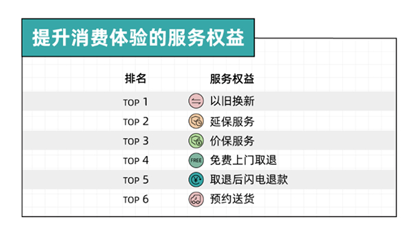 对此,商家不断创新服务产品,如京东电器的增值服务产品,就包含全保修、延长保修、碎屏保、全保换新等近15个种类,覆盖家电、电脑办公、数码、手机通讯近300个品类。贴合年轻人消费观的以旧换新,更是必不可少。据《报告》介绍,京东电器近期推出跨品类以旧换新服务,受到了年轻消费者的青睐:家电、手机、电脑数码均可支持跨品类进行换新,最低0元换,最多可支持6件,最大程度提升年轻人的消费体验。