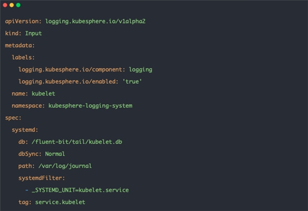 公司Kube-apiserver、kube-scheduler、kubelet等系统组件都是通过二进制部署,通过 systemd 管理。如果要采集kubelet日志,新建一个 Input Yaml 即可轻松实现: