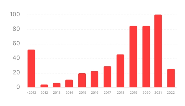 报告发现,榜单歌曲最多的发布年份是2021年,而榜单内2022年发布的新歌数量则不如2017-2021年的歌曲数量。可见歌曲从发布到大火,大多需要一定的时间周期。例如2022年上半年大火的《再见莫妮卡》发布于2021年3月,到今年3月份才逐渐走红爆火。可见我们看待一首歌曲,也需要耐心去等待它从播种、开花到结果。