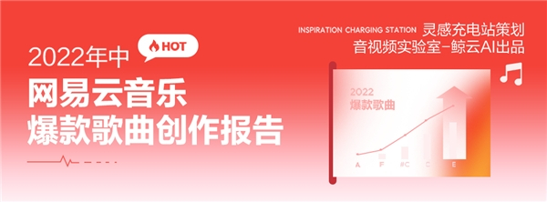 该报告由网易云音乐灵感充电站策划,网易云音乐音视频实验室 鲸云AI出品。即日起,用户可登录网易云音乐搜索“创作报告”,查看纯享版2022年中爆款歌曲创作报告。