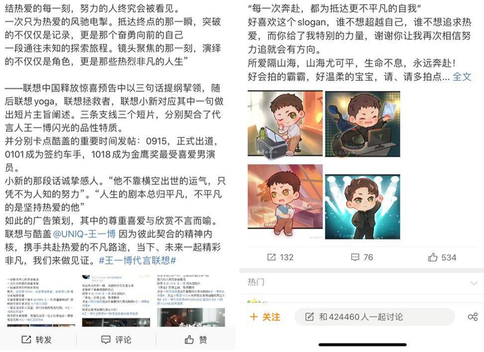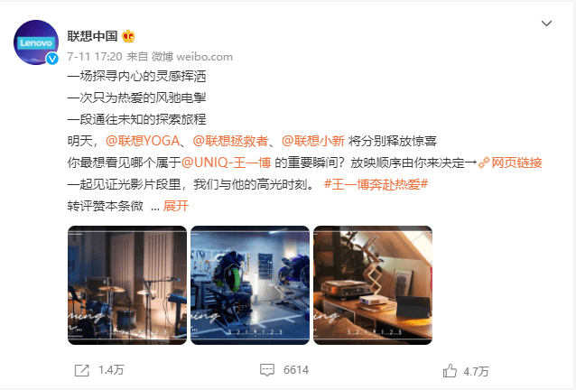 此次联想与王一博的合作表明,成长型系列短片,以其创新的表现形式,丰富多元的内容主题和极具特色的品牌互动,在向用户传递正能量与社会责任的同时,用精巧的创意构思使品牌、明星、粉丝相互融合、相互成就。